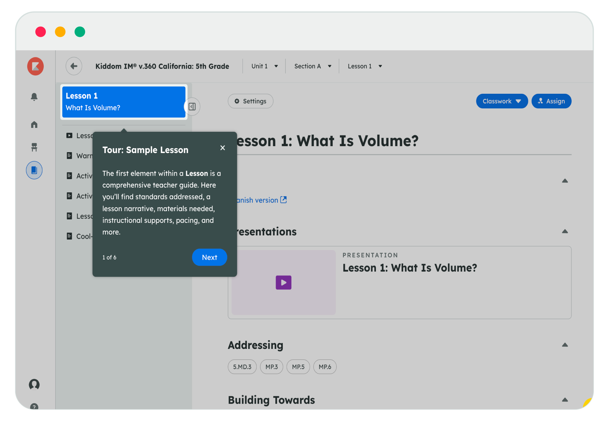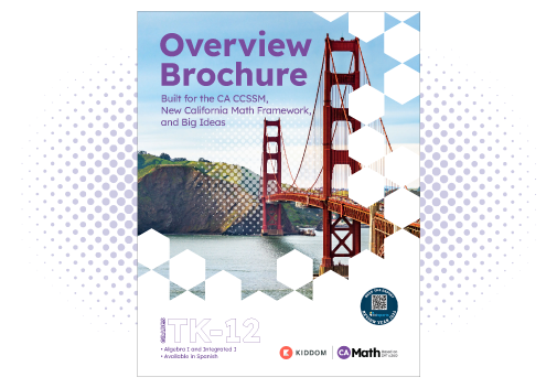 Kiddom IM® v.360 California is built for the California Common Core State Standards for Mathematics, the New California Math Framework, and Big Ideas, and is available in digital, print, and kit formats.