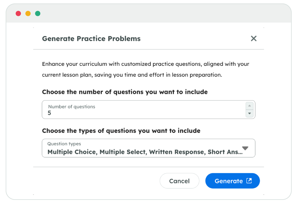 Generate practice problems and automatically provide feedback for student responses.