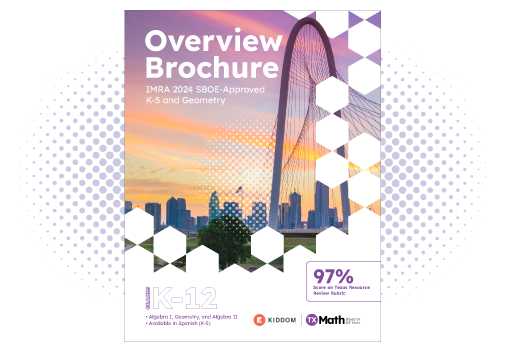 Kiddom Texas Math is aligned to the TEKS and ELPS, built upon Illustrative Mathematics® HQIM, and available in digital, print, and kit formats.