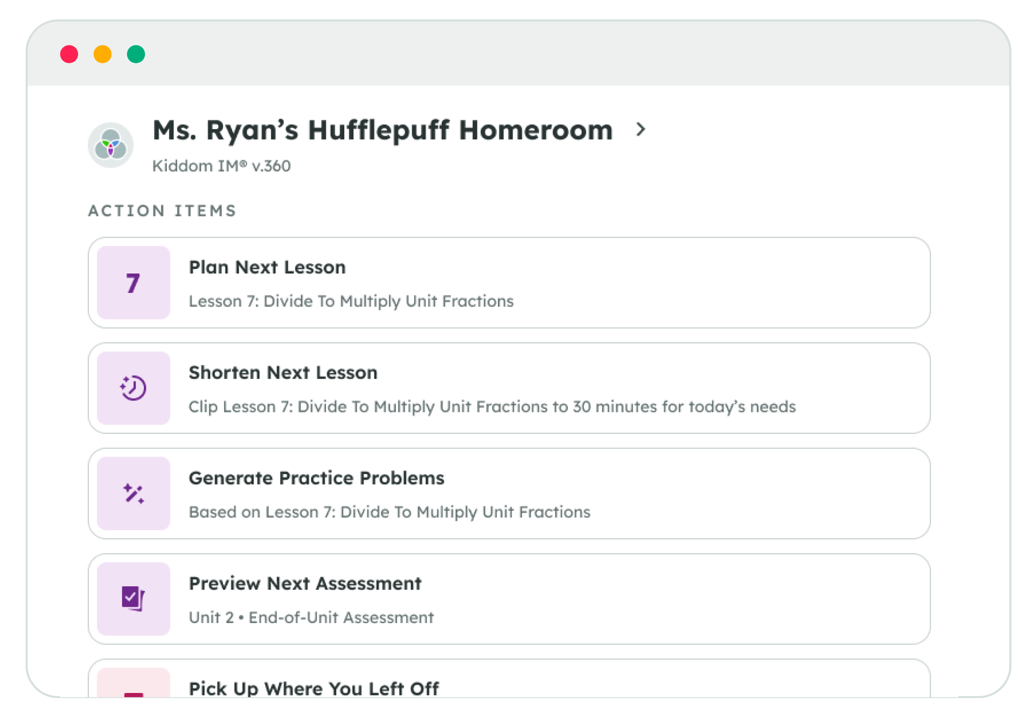 Get personalized next-step instructional recommendations on your homepage.