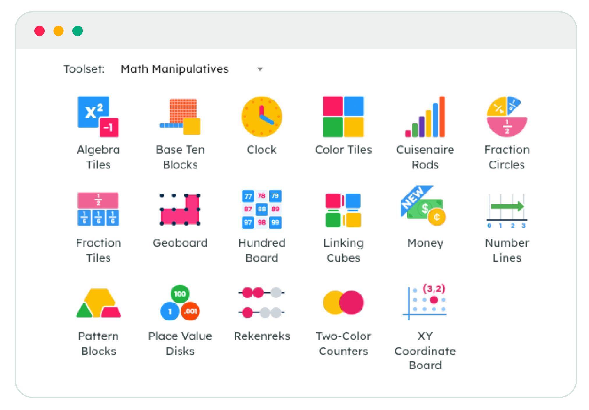 Hands-on materials are key to conceptual learning. Kiddom offers Manipulative Kits for all grades and Centers Kits for grades K-5. Kiddom also offers digital manipulatives for use in lessons, providing added flexibility.